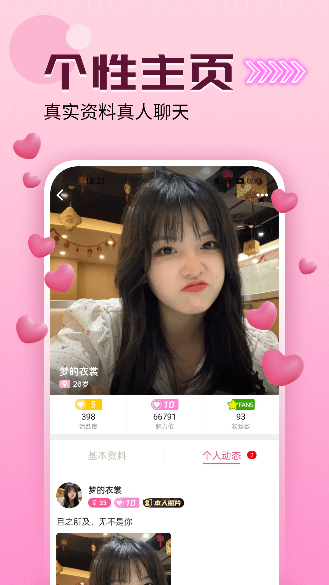【个性主页】这里展示的都是真实资料,你将与真人畅快聊天,让交流更放心、更真诚。