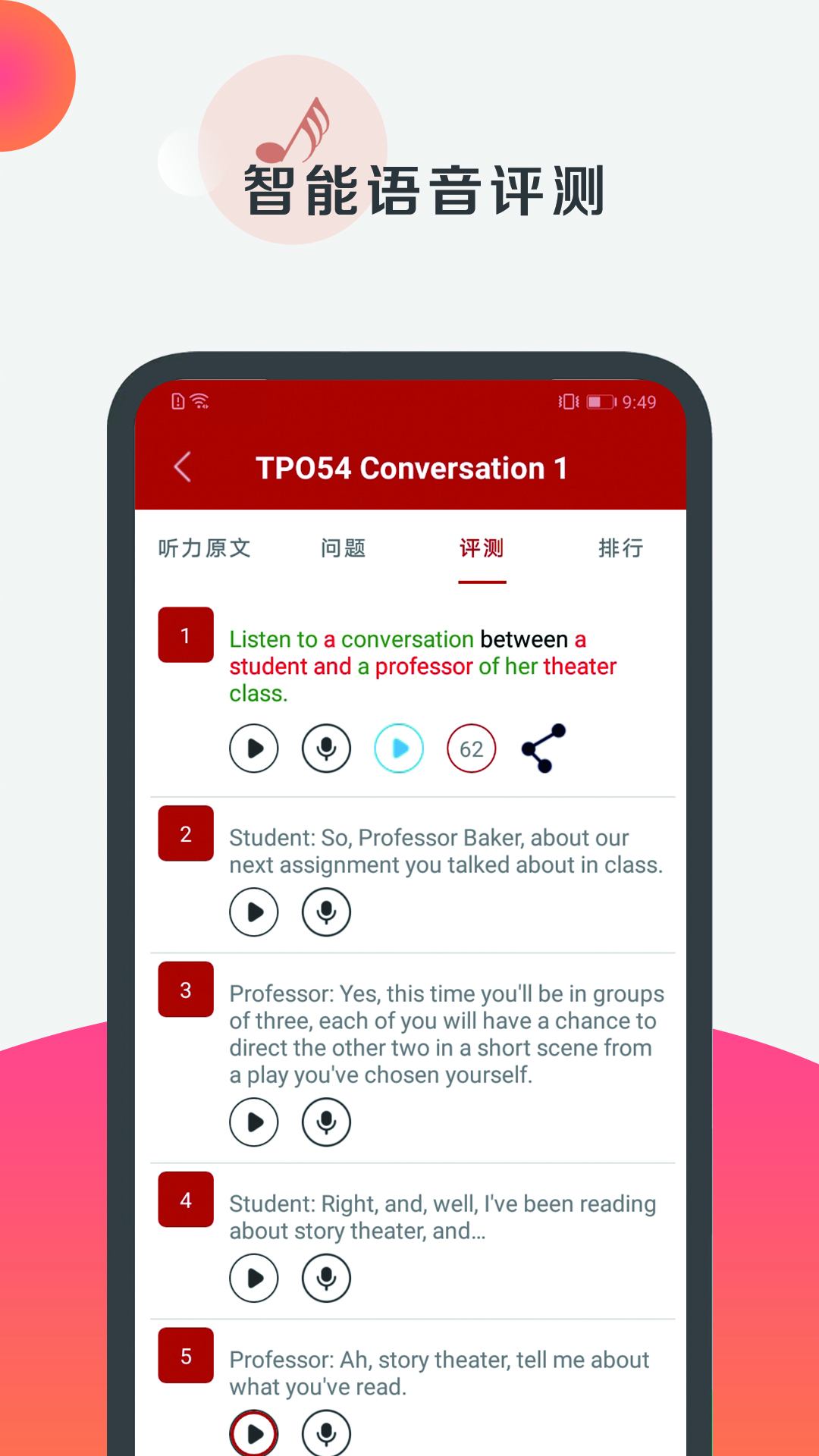 1. **题库**:拥有48套官方最新的TPO听力题,题型丰富多样。我们提供泛听和精听两种模式,句子可反复听,听力练习结束后就能马上进行强化训练,还有专业的解析为考生答疑解惑。