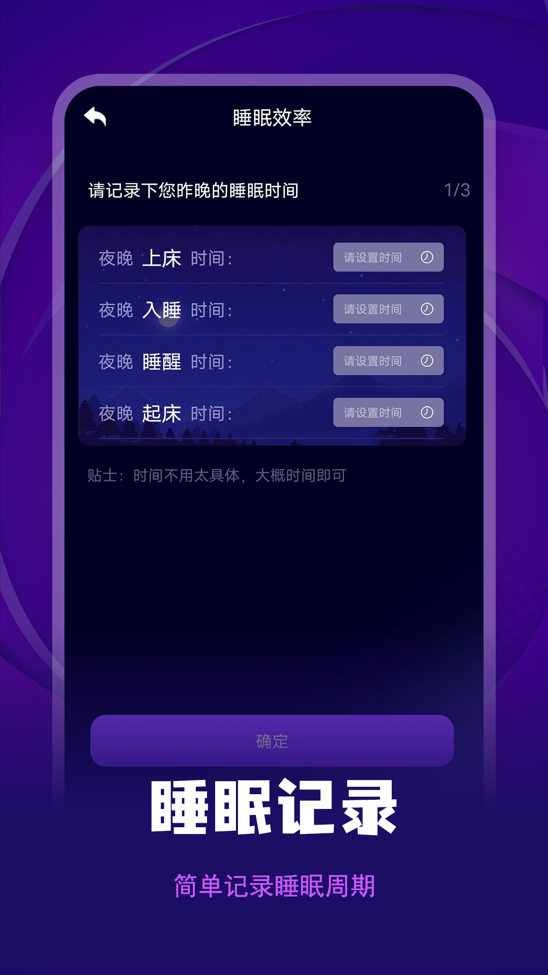 1.睡眠记录:轻松记录您的入睡时间、醒来时间以及睡眠时长,帮助您了解自己的睡眠习惯。