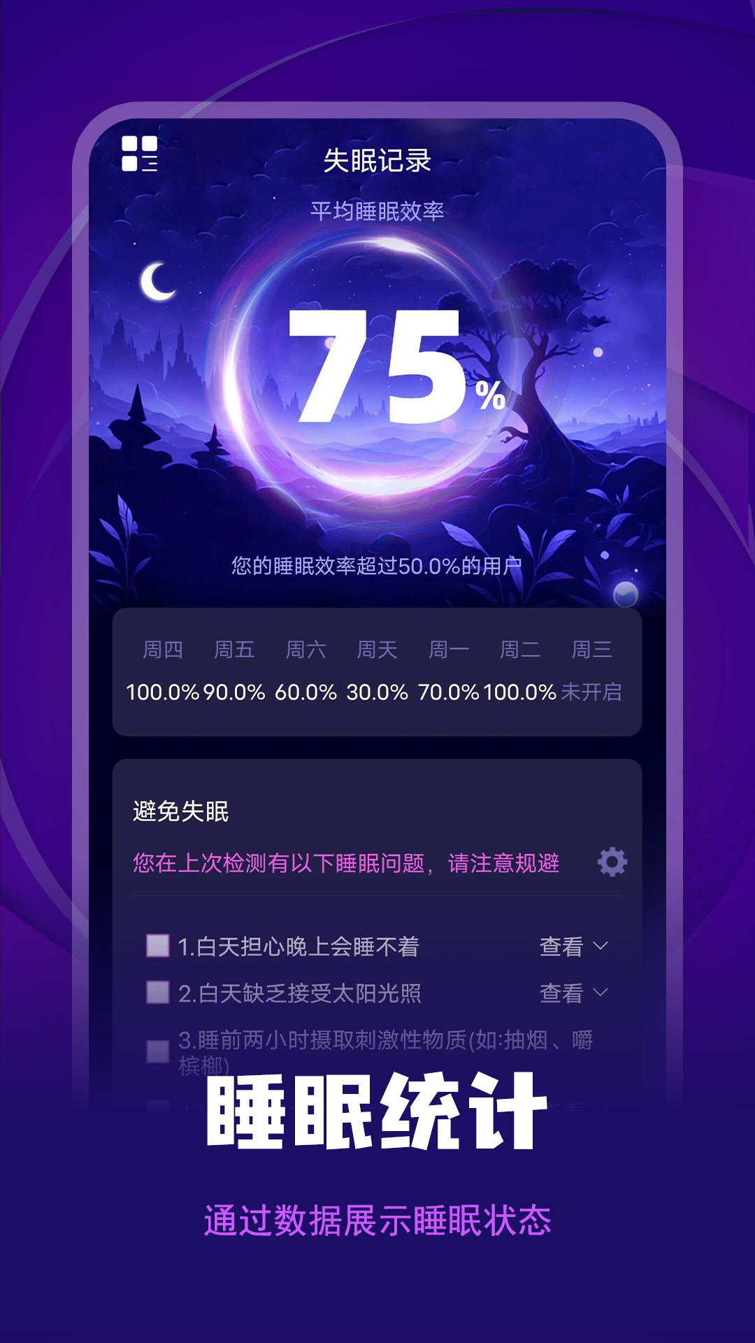 4.助眠建议:提供丰富的助眠建议,包括调整作息、改善睡眠环境、进行放松训练等,帮助您改善睡眠。