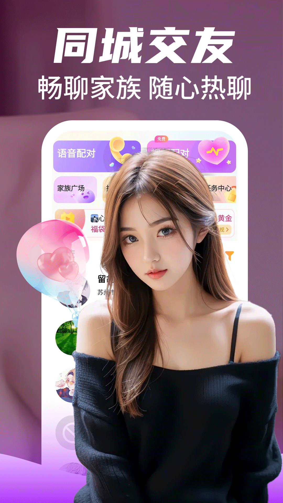 附近陌约聊,一个超棒的视频聊天交友约会平台。在这里,你能迅速匹配到同城附近如同探探、爱聊里的陌生好友哦。它开启了全新的陌生聊天交友模式,让你可以24小时在线互动畅聊。