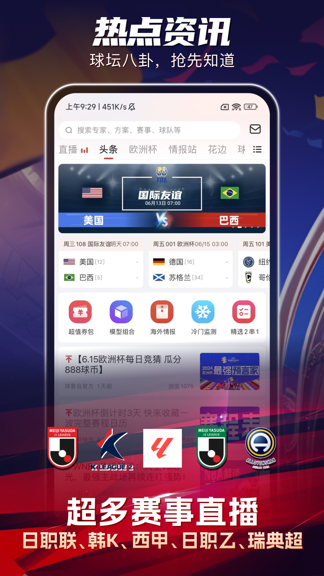 西甲、澳超、德乙、瑞典超、日职、韩K,尽在球客岛! 汇聚西甲激情、澳超活力、德乙潜力、日职联与日职乙的细腻、韩K联的火爆、瑞典超的坚韧,球客岛APP为您呈现全球足坛的饕餮盛宴。版权在手,精彩赛事不停歇,让您的足球世界更加丰富多彩!