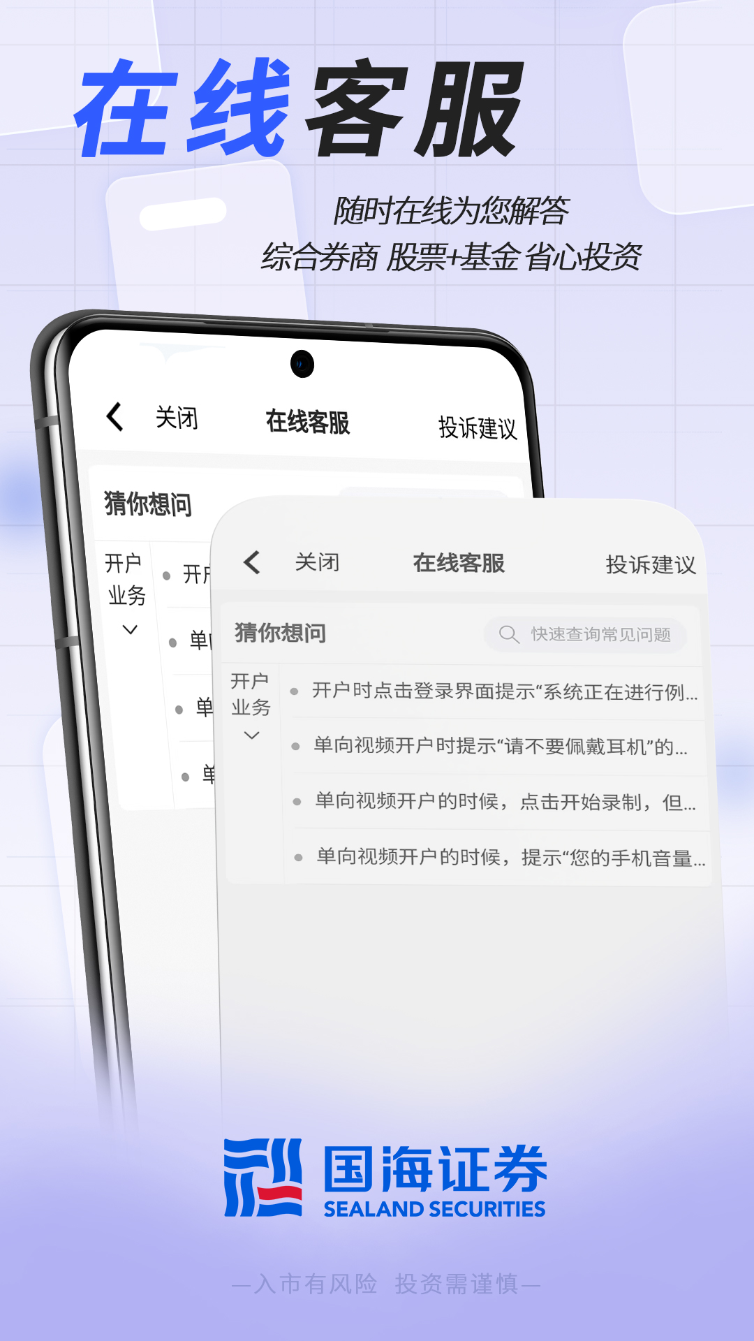国海证券开户APP是国海证券专为客户精心打造的开户系统哦。这个APP为投资者提供7x24小时的线上开户服务,您只要准备好身份证和银行卡,就能轻松搞定开户,就这么容易!