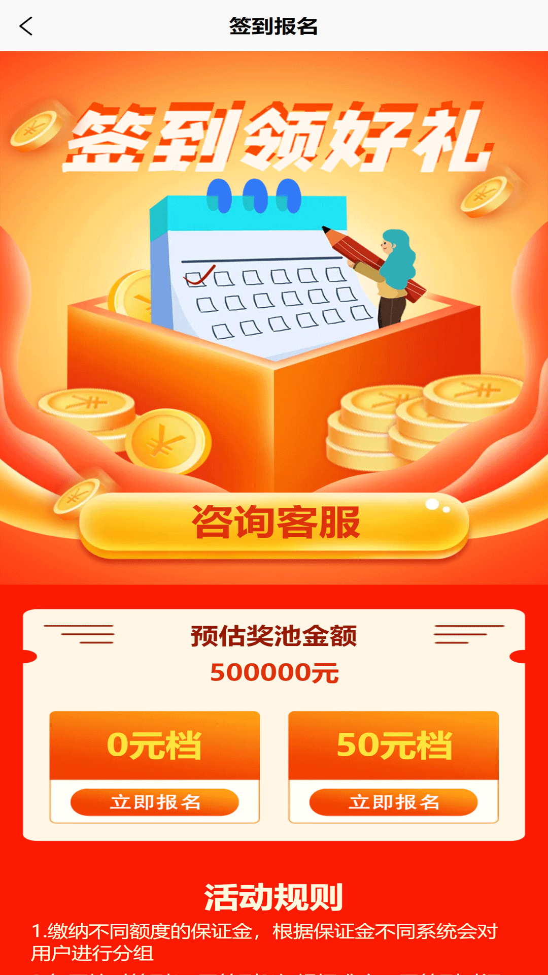 4. 若签到失败,所缴纳的保证金不予退还,而是成为同组参赛用户的奖励。