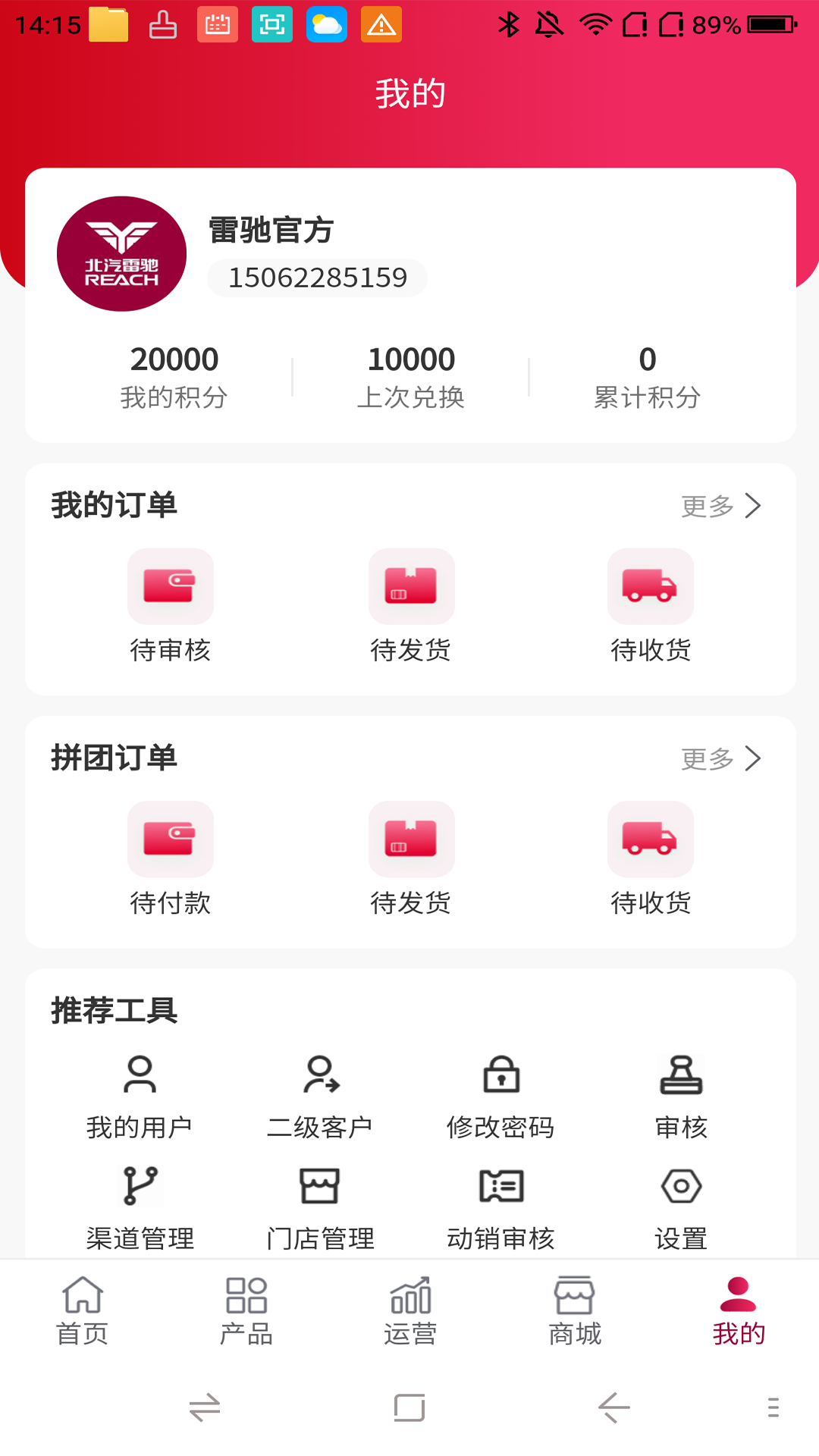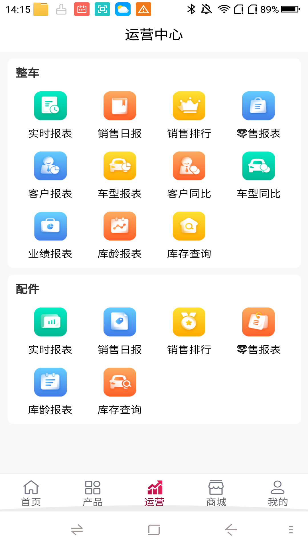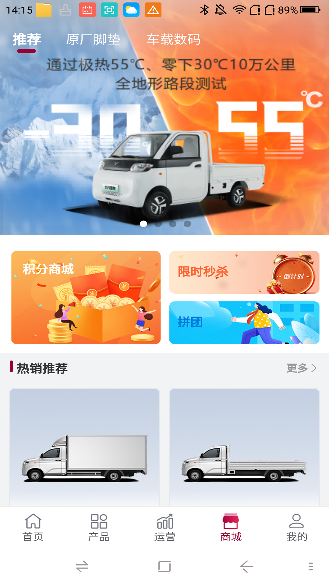 APP分为首页、产品、运营、商城及我的五大功能模块。登录后可使用相关功能