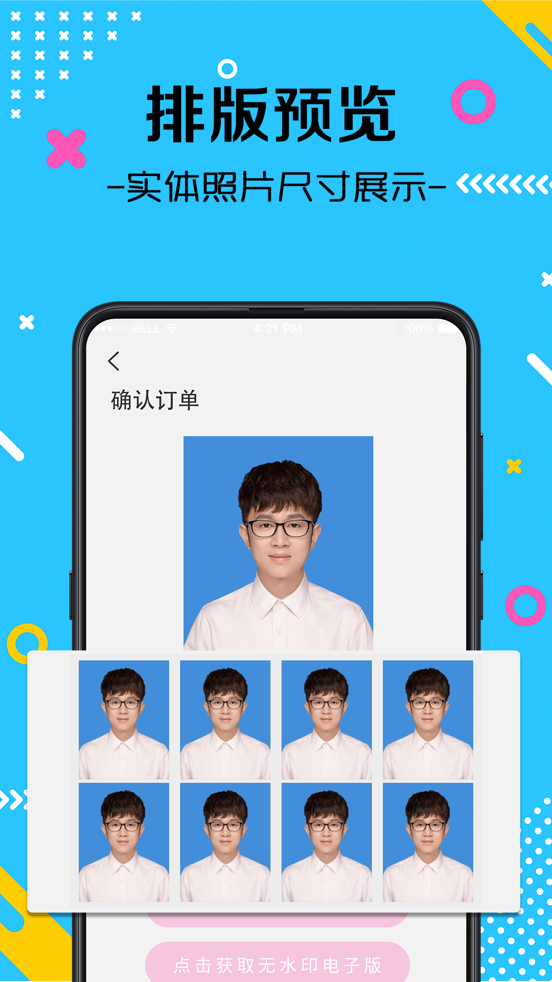 【一键美颜】这个功能方便又快捷,只需一秒就能完成美颜操作。不需要美图软件,也不需要美图秀秀,美颜、美肤、美白等都能一键搞定,让您拍出超级可爱完美的证件照,就是为了让您变得更美。