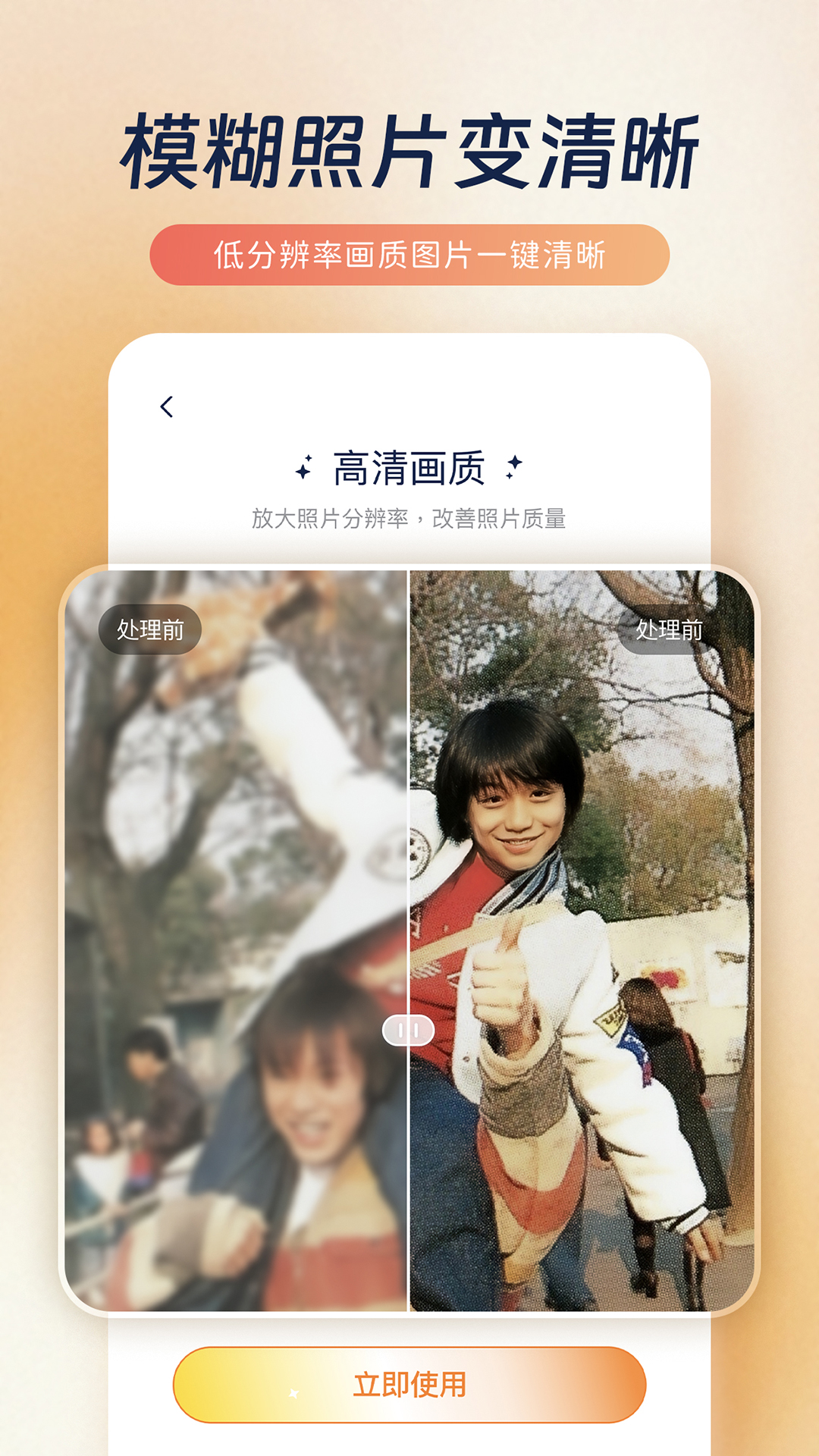 1.一键清晰:放大照片分辨率,改善照片质量高清画质