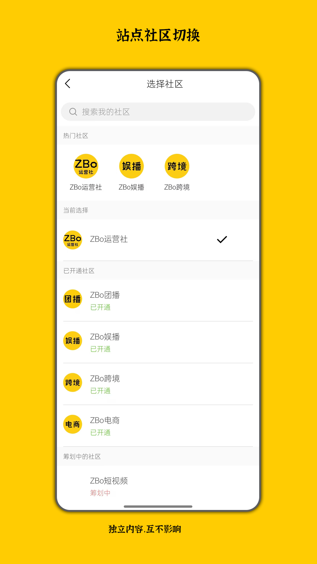 其板块设置独具特色,每个板块的内容相互独立,彼此之间互不干扰,并且可以随时进行切换。目前已经开通了团播、娱播、电商、跨境等板块,还计划开通短视频、自媒体板块。