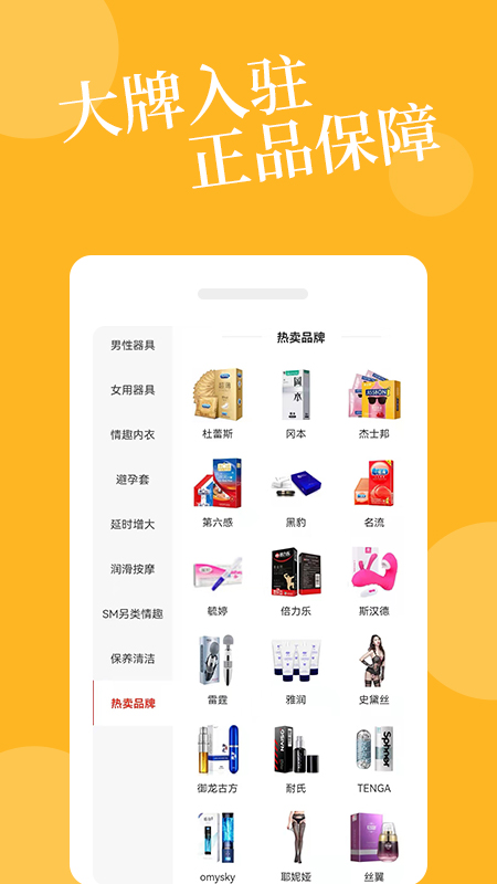 【正品大牌】众多大牌入驻,品质有保障,是您购买情趣用品的不二之选。