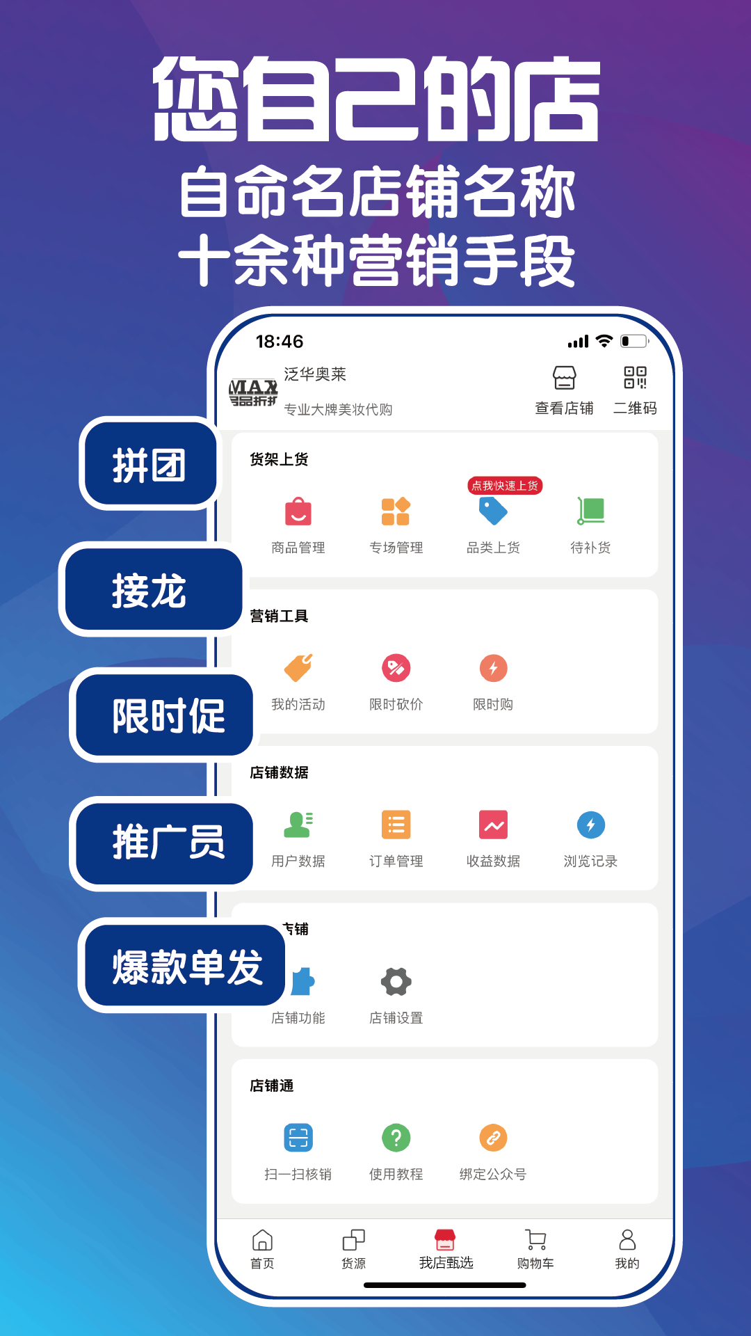 【一键开店】我们提供超过百个品类,10万+SKU供您选择。同时平台合作方式多样性。一键开店功能让您轻松导入货品、调整价格、实现一件代发,无需担心库存压力,同时可以自由设定利润空间,是创业者理想的店铺模式。此外,通过平台分佣机制,您只需分享平台即可获得收益,即使在休息时也能轻松创业。