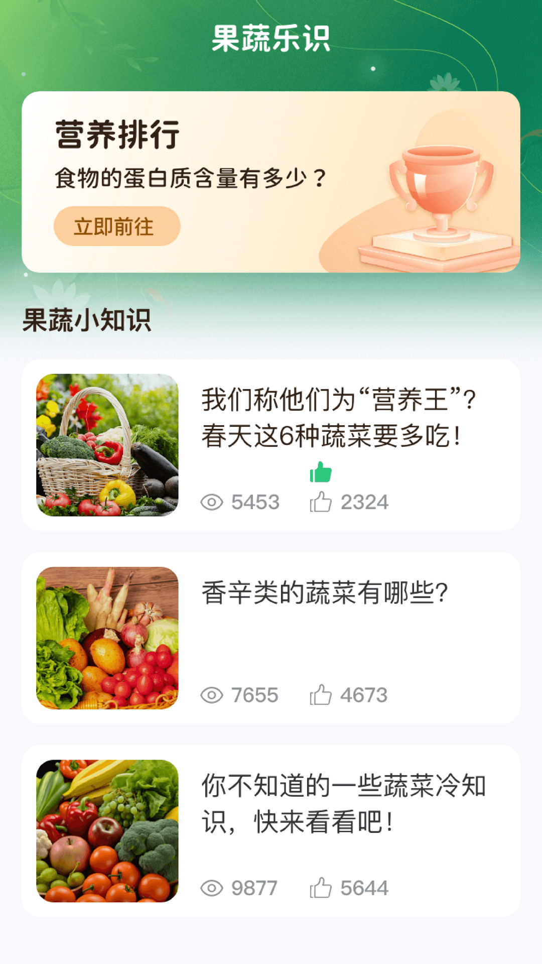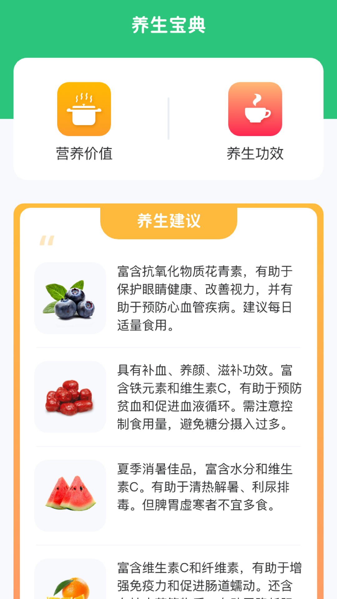 果乐宝典具有蔬菜的营养价值排行,以及详细的果蔬知识介绍;养生宝典包括水果营养价值和养生功效以及养生建议,让你更了解水果。喜欢的话,下载玩玩看~