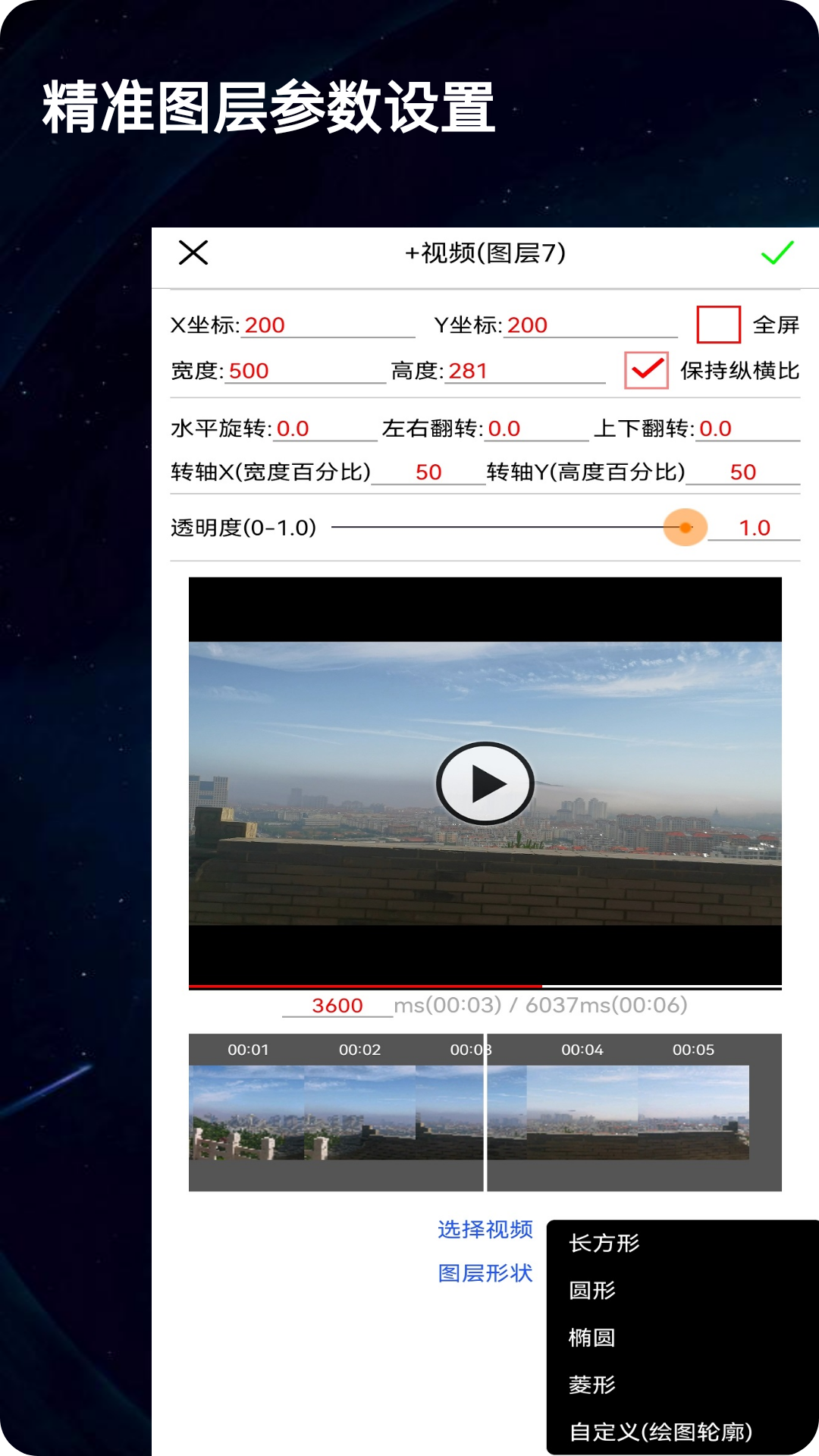 5. 控制视频图层进行旋转、翻转、缩放等操作。