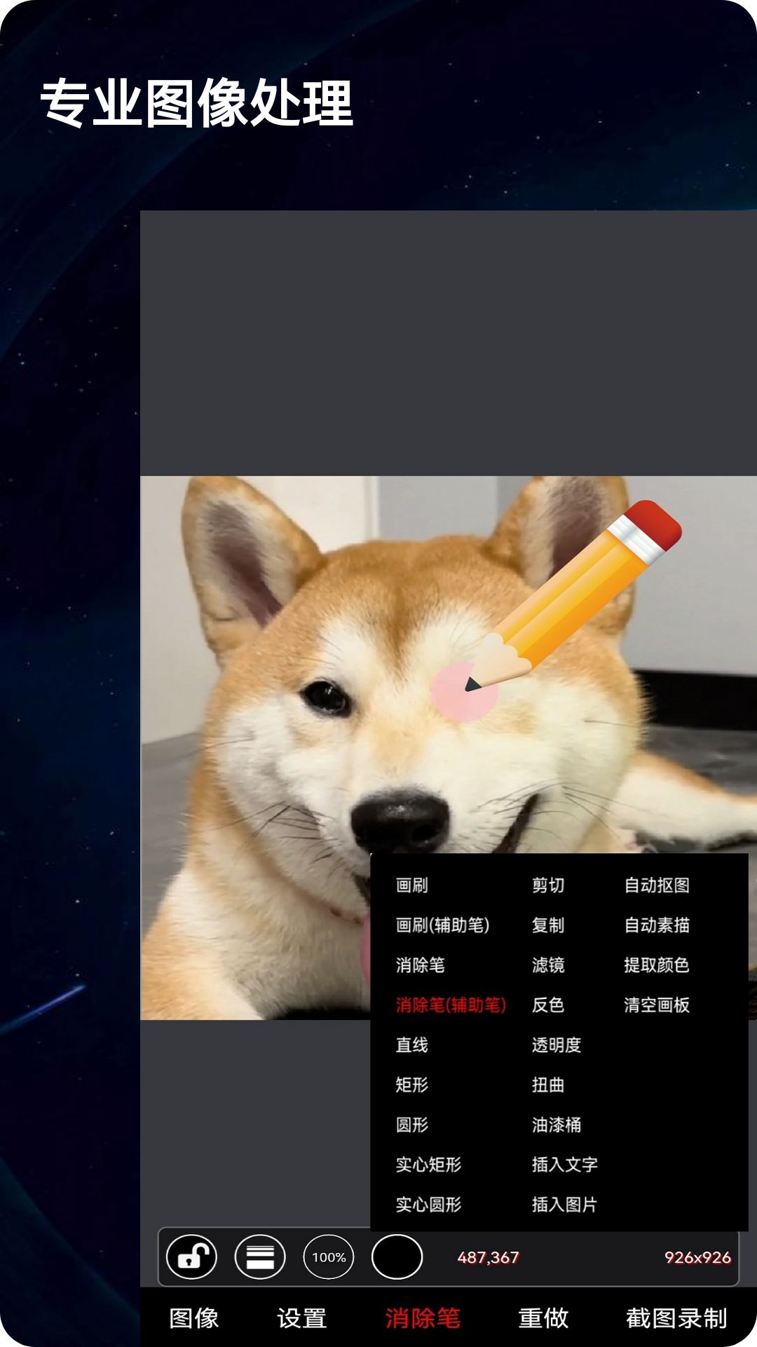 6. 图像编辑提供辅助笔功能,通过拖动辅助笔进行绘制或擦除,从而提高处理的控制精细度。
