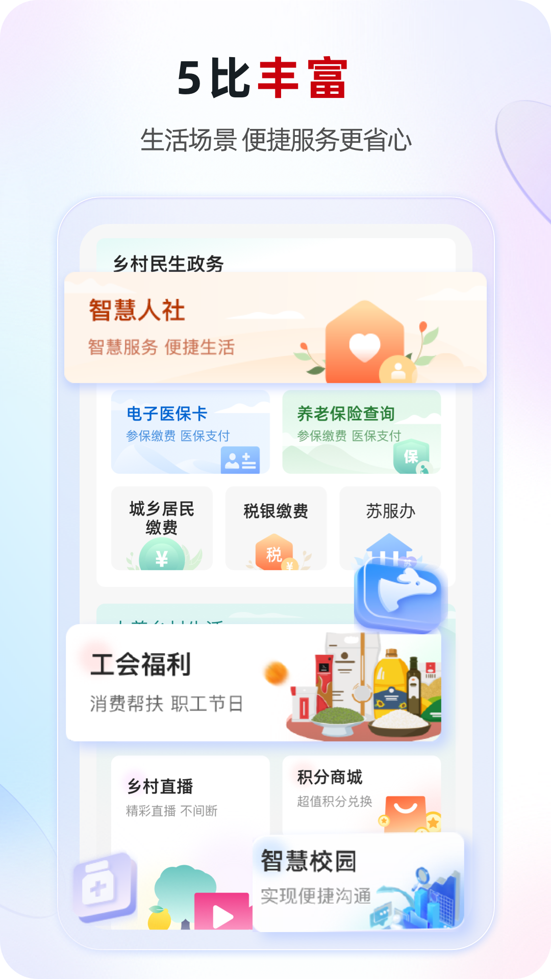 【新场景】无论是智慧校园、工会福利,还是智慧人社等场景,都应有尽有,无比丰富的场景应用为您的生活增添更多便利。