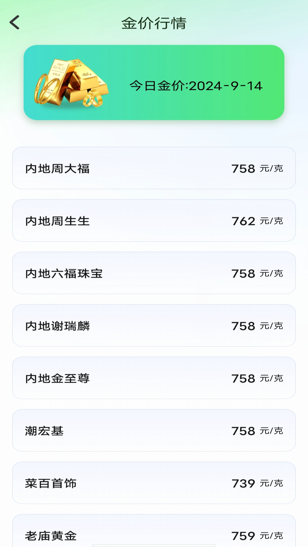 - 会显示金店的实时金价,同时还提供金价的历史数据,方便用户深入分析金价走势,从而跟踪市场趋势,无论是投资黄金还是购买金饰,都能为用户提供有价值的参考。