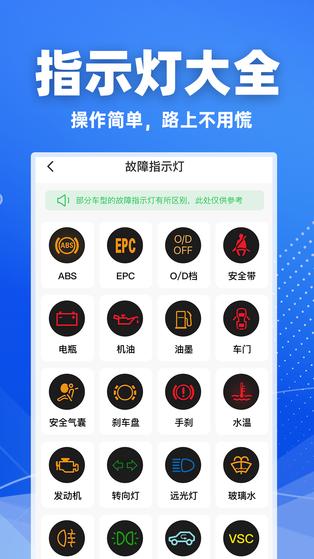 提供汽车指示灯的详细解读,帮助用户了解指示灯的含义和对应故障的处理方法。