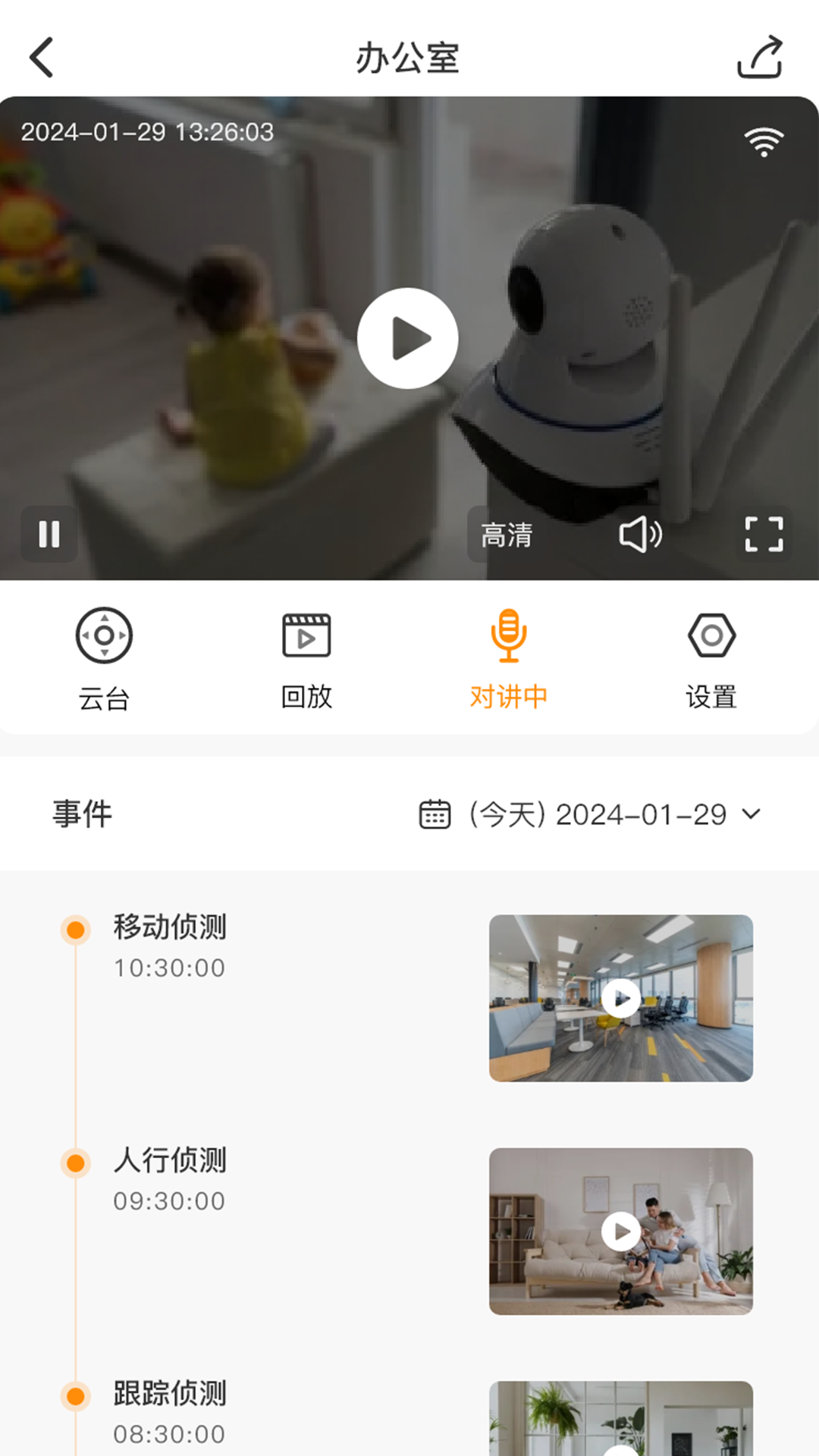 4. 支持回放、智能布防、视频高清等功能:用户可以对监控视频进行回放查看,通过智能布防功能增强安全性,并且能够享受到高清的视频画面。