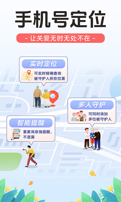 手机号定位寻人是一款专门为家人和朋友建立联系而打造的手机定位软件。它的适用对象主要是老人、小孩以及两地分居的夫妻。