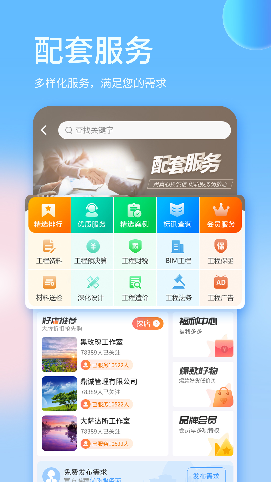 易筑app是一款功能丰富的软件应用,它集材料商城、信息共享、信息匹配以及信息管理等多种功能于一体。在该应用中,用户能够进行材料交易、材料送检,还能获取劳务分包、专业分包以及招投标采购等服务。