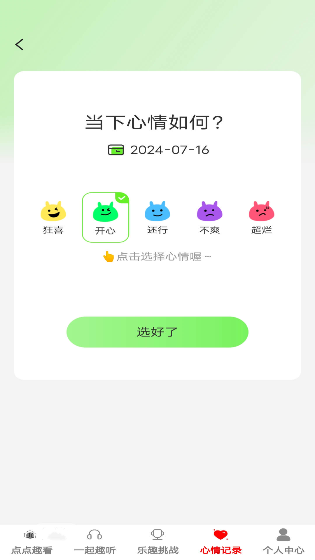 在点点趣多多里,您能够随时记录心情的细微之处。每一日情绪的起伏波动,都可以被一一记录下来,这就如同为您个人的情感打造了一份珍贵的档案,往昔的情绪轨迹清晰可寻。