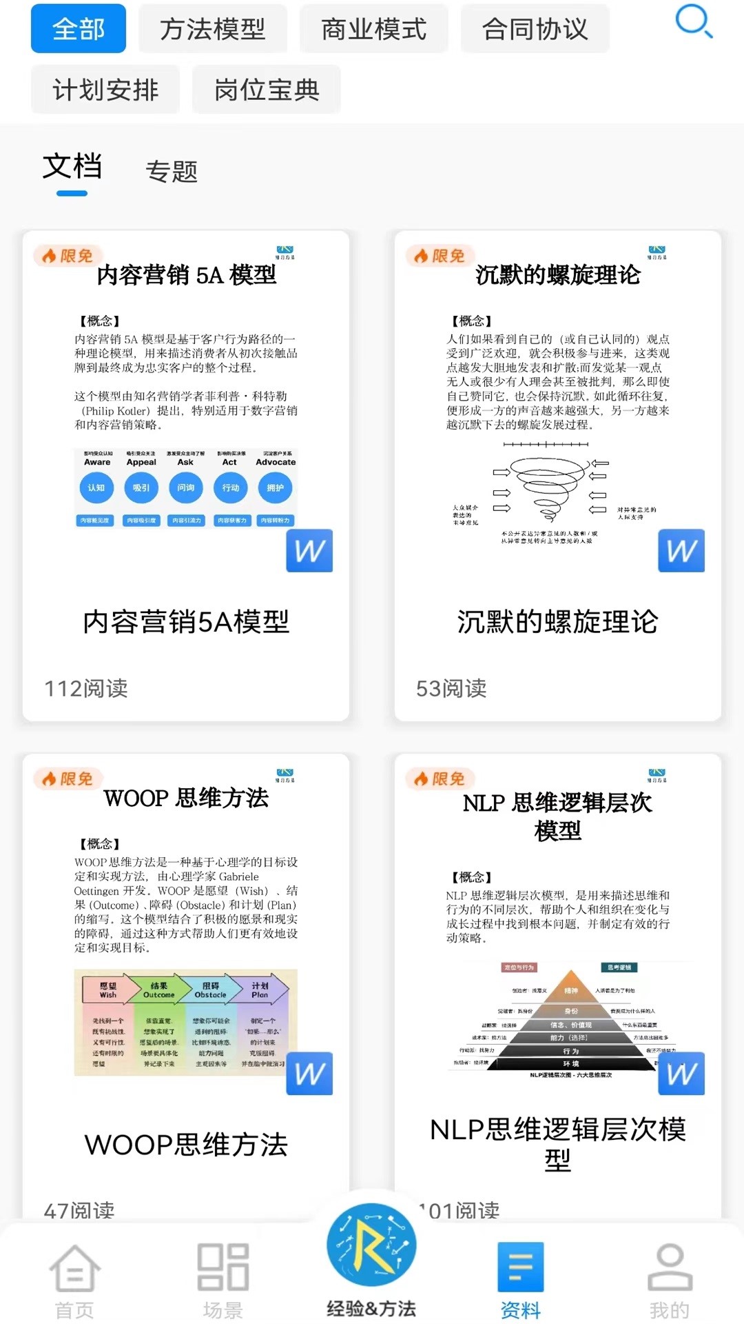 知刃方法是一款极具价值、先进且行之有效的方法论软件。它涵盖了工作与生活中各类场景下不同的应对方法,不但提供场景故事供用户阅读,还配套有相应的文档资料、工作经验分享、事项筹备指导,以及分析模型工具等资源供用户下载。
