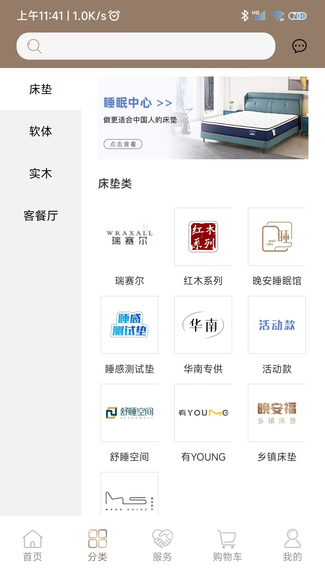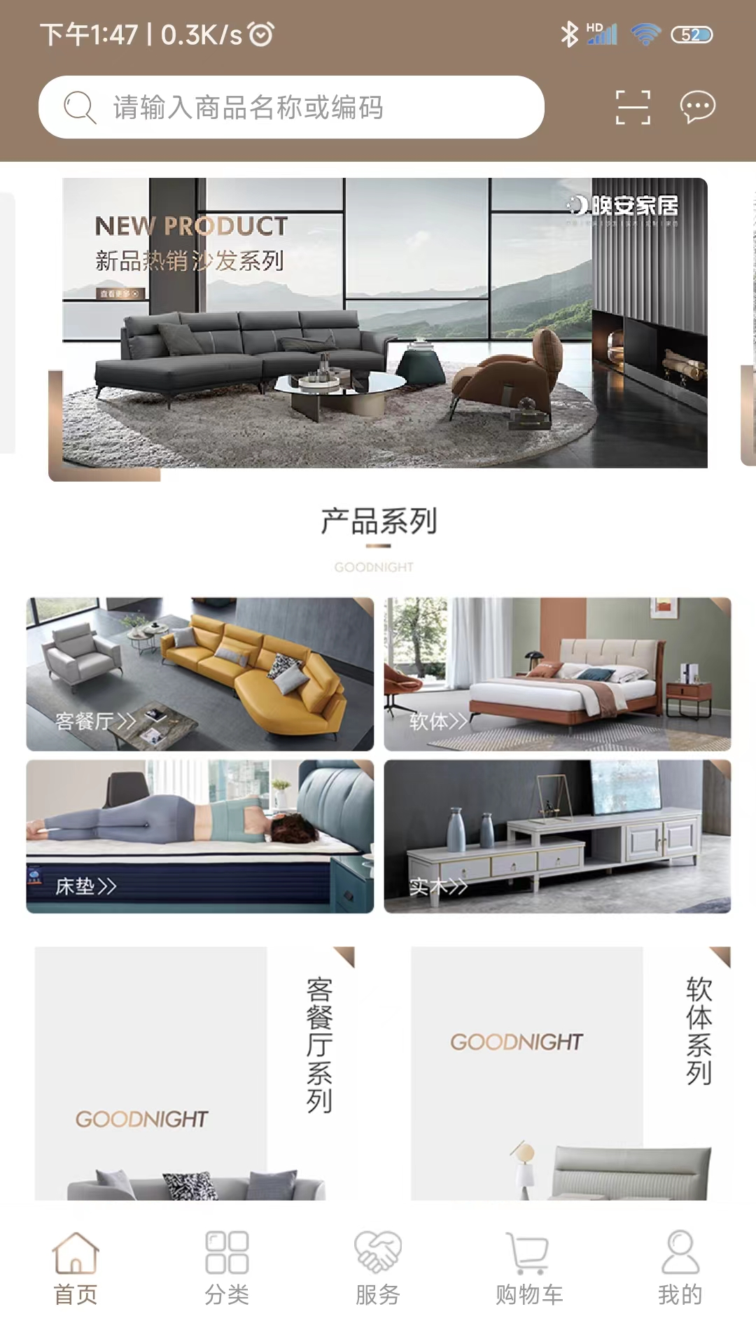 晚安家居APP建设晚安集团市场服务平台,聚合晚安优品(平台公司)、晚安家居、销售公司、OEM供应商、策划公司、品牌公司 增进各单位间沟通,建立信息交流平台。平台为客户提供:床垫,软体,实木,客餐厅 多品类产品。
