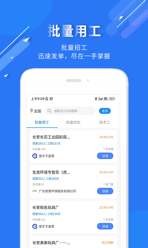 无论是找临时工、找正式工,还是招临时工、招正式工以及批量招工,度才子都能满足需求。