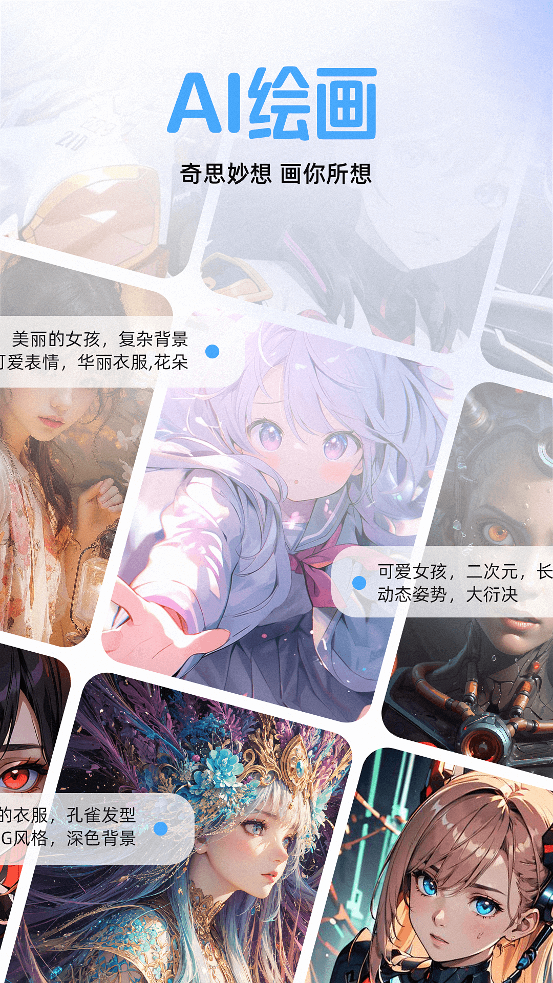 您只需简单描述自己的创意,AI创作宝就能一键为您生成专属的绘画作品。无论是动漫风格,还是浪漫唯美的风格,亦或是其他任何天马行空的创意灵感,都可以通过它变为现实。