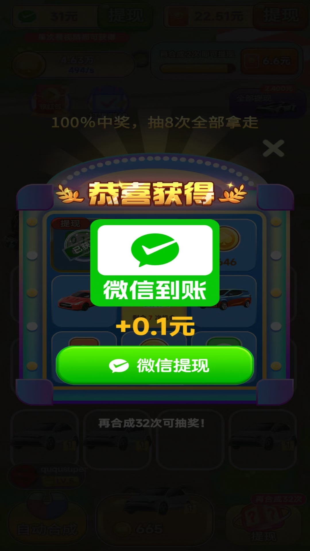 多多小汽车是一款好玩有趣又赚钱的汽车合成软件,合成解锁各种汽车,还能获得多多红包奖励。红包赚钱,提现快速到账。