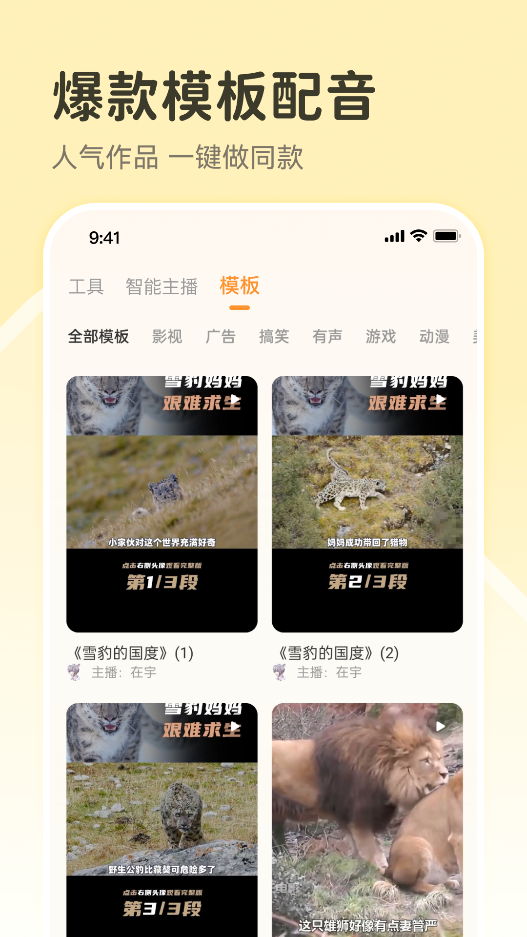 鸭鸭有短视频火爆的主播声音,超多情绪主播随意调节。可以满足不同语境下的配音要求。