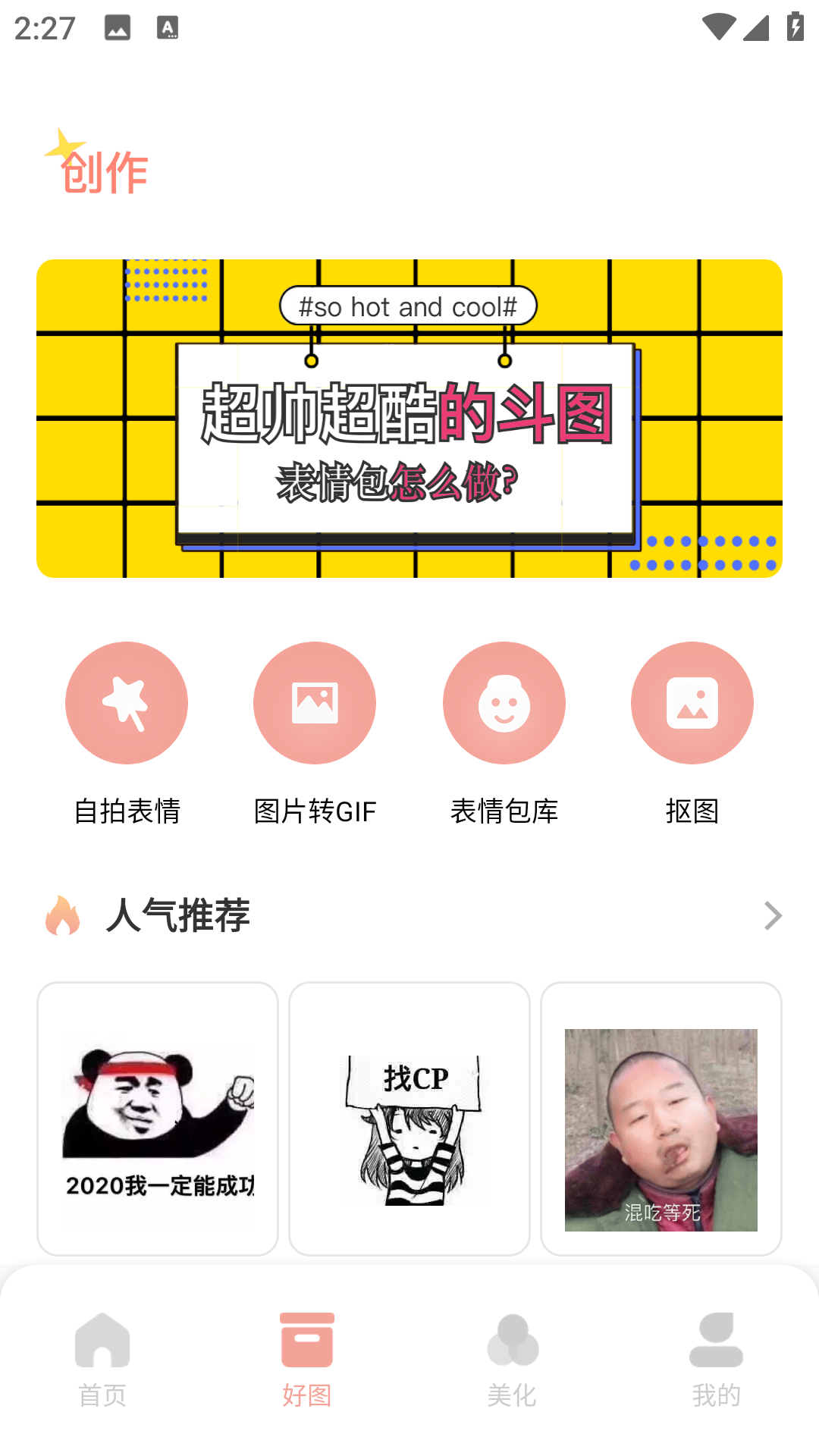 于表情包制作工具而言,这里有自拍表情、能将图片转换为GIF的功能、丰富的表情包库,还有抠图等实用工具。
