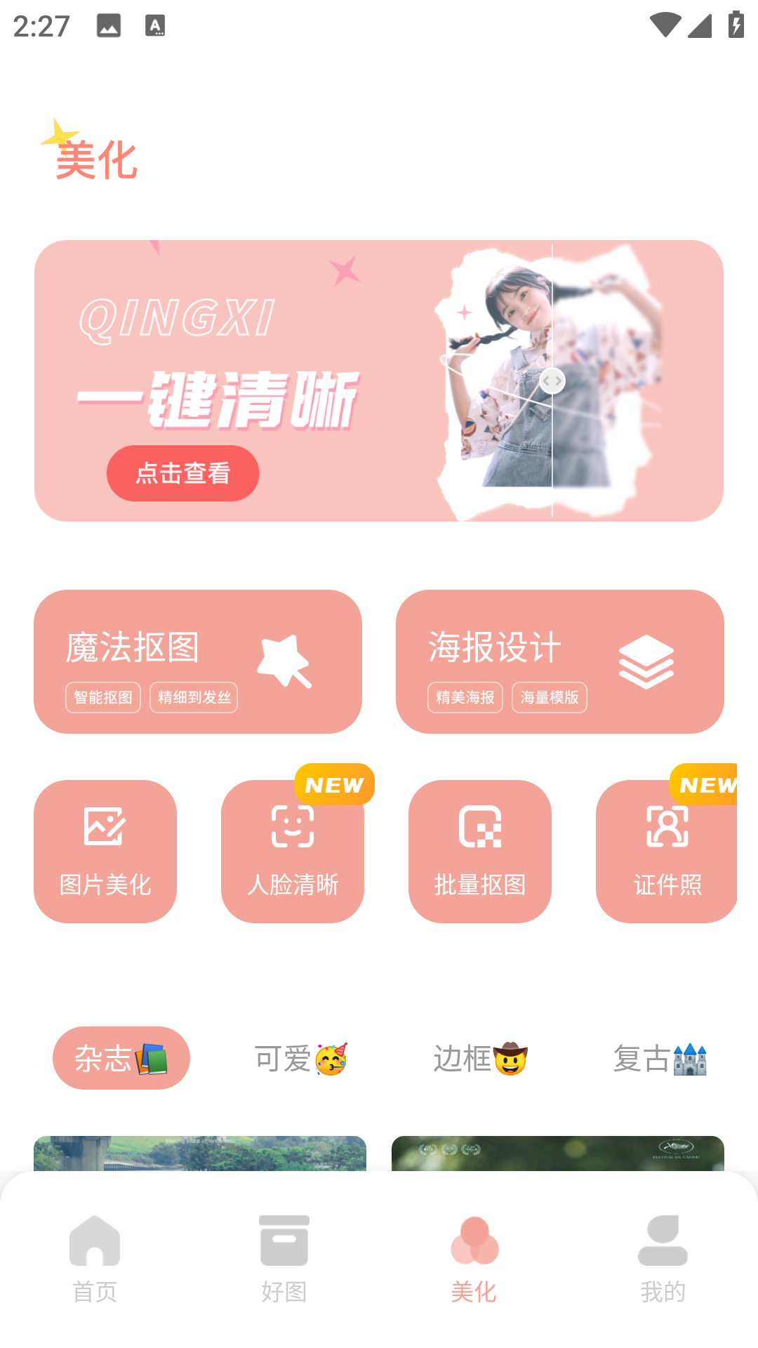 在图片处理方面,它具备众多功能,像魔法抠图、海报设计、图片美化、人脸清晰、批量抠图以及证件照制作等功能一应俱全。