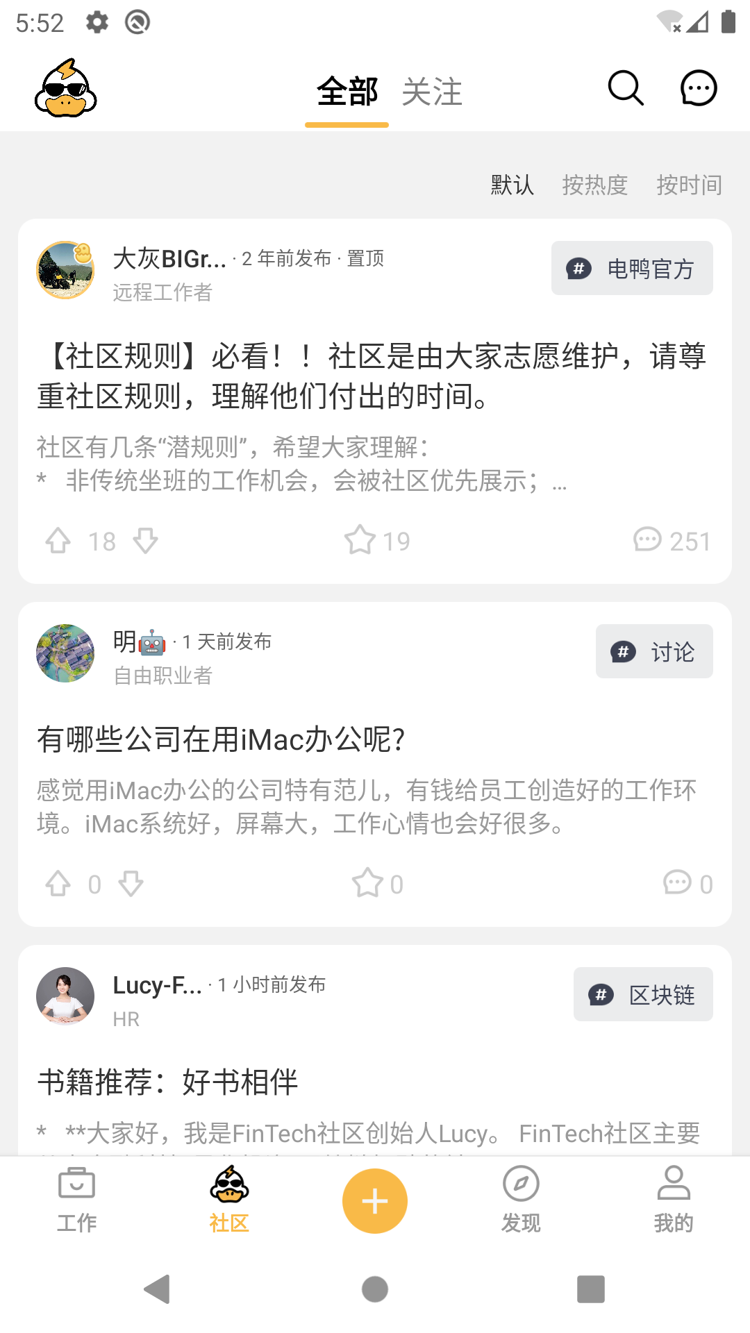 电鸭社区是国内较早的远程工作社区,也是互联网工作者们的聚集地。在社区,我们进行有价值的话题讨论,也分享远程、外包、零活、兼职、驻场等非主流工作机会。「只工作,不上班」是我们倡导的工作态度。