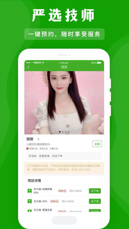 应约,一个专注于按摩服务预约的绿色平台。它致力于为您寻觅周边的精品按摩店,还能为您精准匹配附近手法精湛的上门按摩技师。您无需出门,只要轻松预约,健康就能送到家。