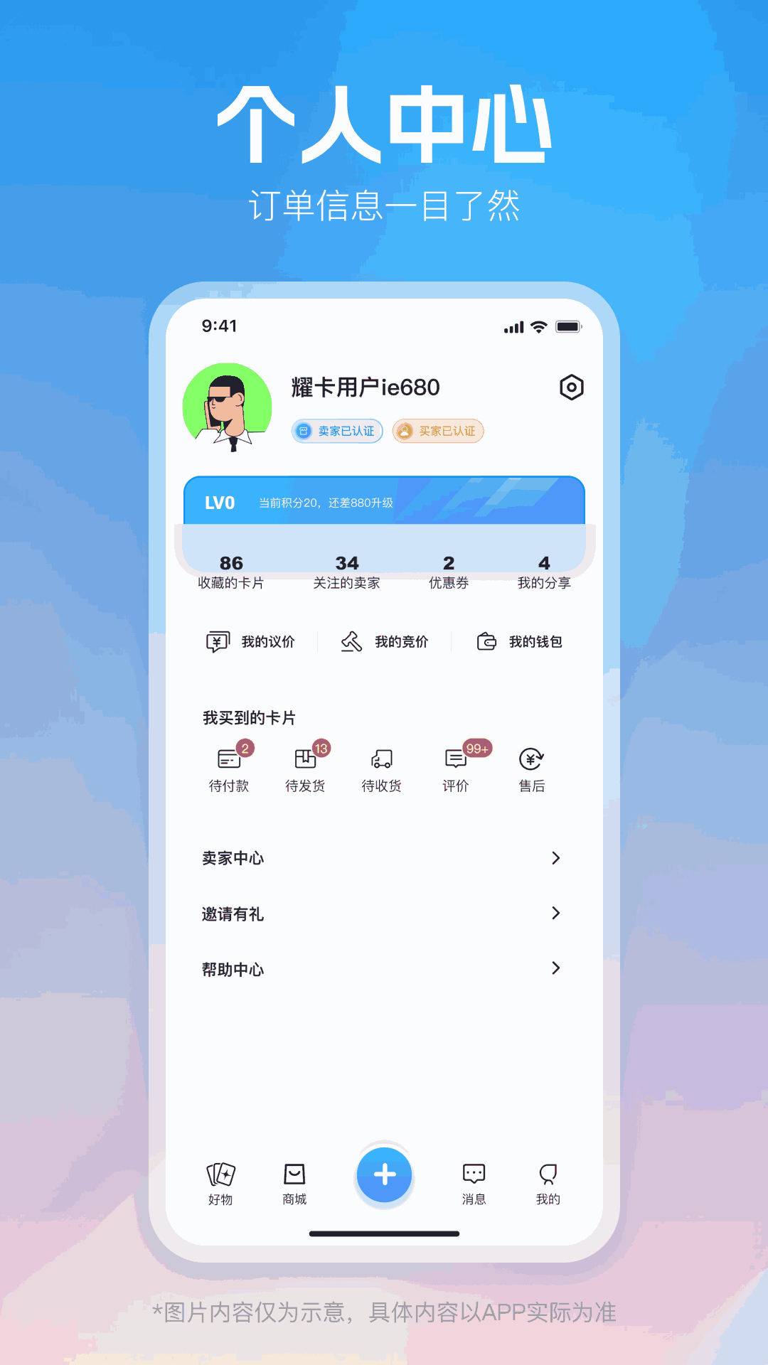 YourCard耀卡APP,是苏州水镜数语科技有限公司旗下产品。本司全体成员,以国内广大卡迷用户需求为导向,本着纯粹的一站式服务态度,尝试在不断版本迭代优化中创新,以求打造集合卡价信息查询、社区热门精选、轻松发布上拍,个性化拍卖方式,高效安全回款的专业性垂直平台。