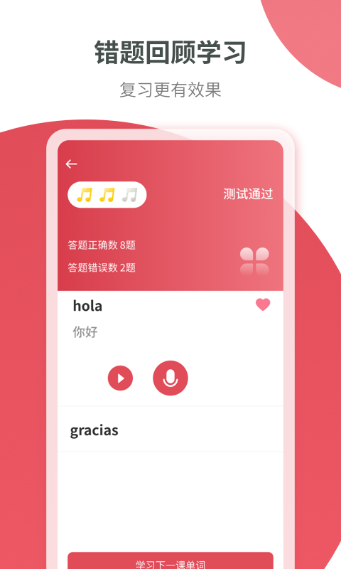 这是一款便于随时随地学习西语的软件,特别是在乘坐公交地铁等碎片化时间里,你可以轻松地用它来背西语单词。