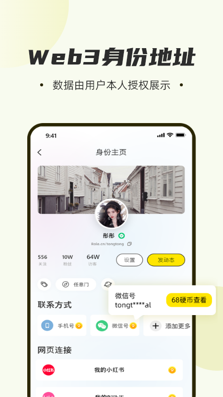 【身份地址】这是简短的个性化网址,能够根据身份场景的需求自由编辑,用来向他人展示你的所有信息。
