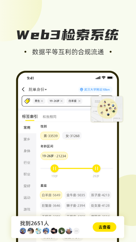 【标签找人】通过多重标签进行筛选,找到你心仪的任何人群。