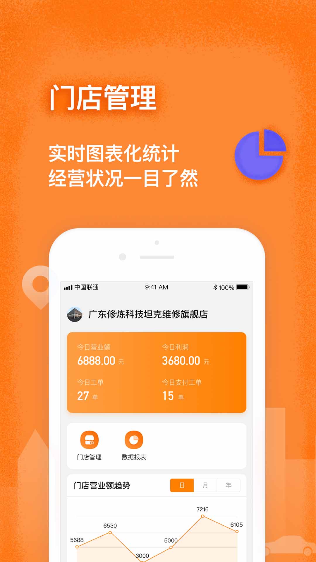 【门店管理】以实时图表的形式进行统计,经营状况能够一目了然;