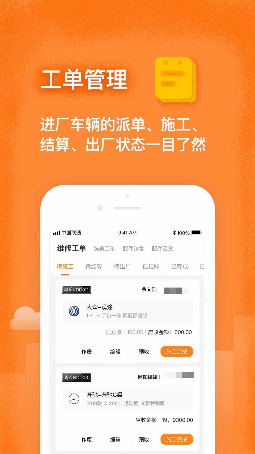 【工单管理】可随时查看进厂车辆处于派单、施工、结算还是出厂等状态;