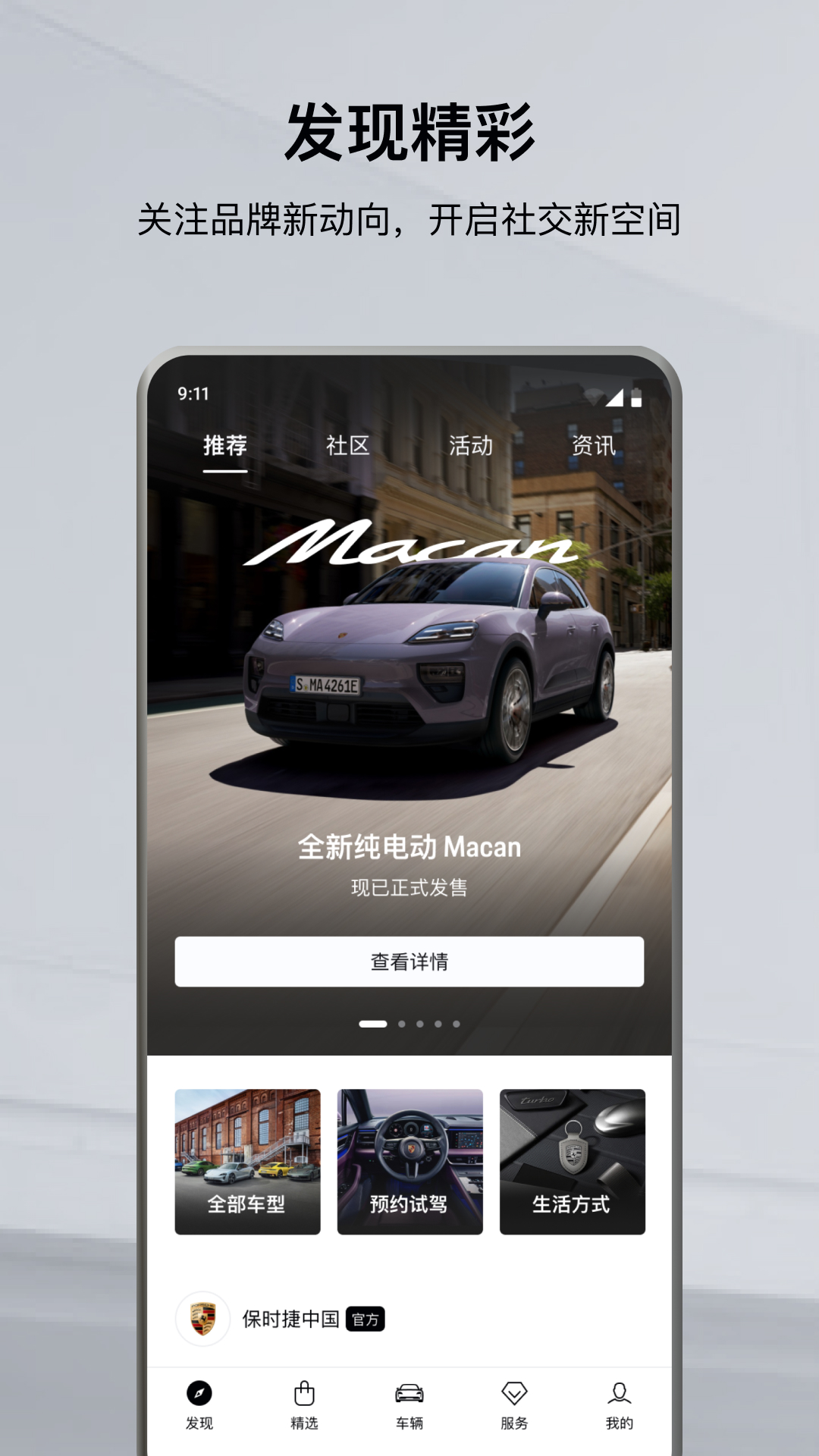 此模块汇聚了保时捷的品牌资讯、活动信息以及车主俱乐部相关内容,并且具备用户动态发布功能,能让您按照自己的心意分享生活中的各个瞬间。