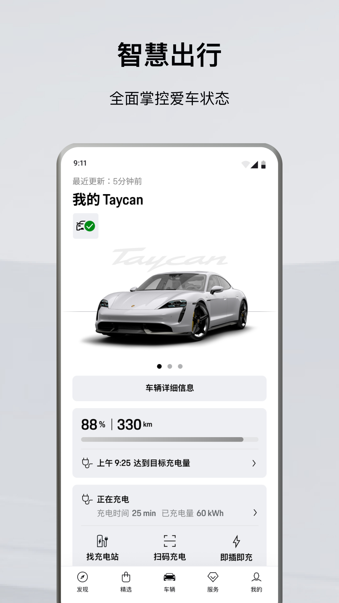 车主可进入车辆模块,运用车辆远程操控功能,随时知晓自己爱车的状态。新能源车主还能够查找充电站并完成充电操作。此模块新增了“循迹新程”功能,借助该功能可以全面了解订单的详细情况,并跟踪订单的进度。非车主则可以在车型模块进行浏览,这里包含了保时捷车型的相关介绍。