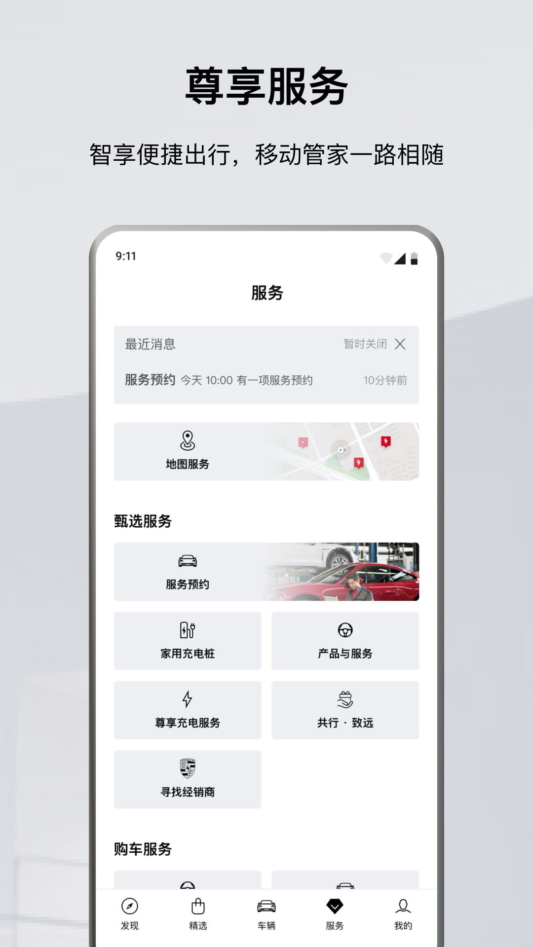 此模块提供丰富的车主服务,涵盖维保预约、服务提醒、预约交车仪式、了解全系车型、预约试驾等,为您提供便捷的用车和购车功能。
