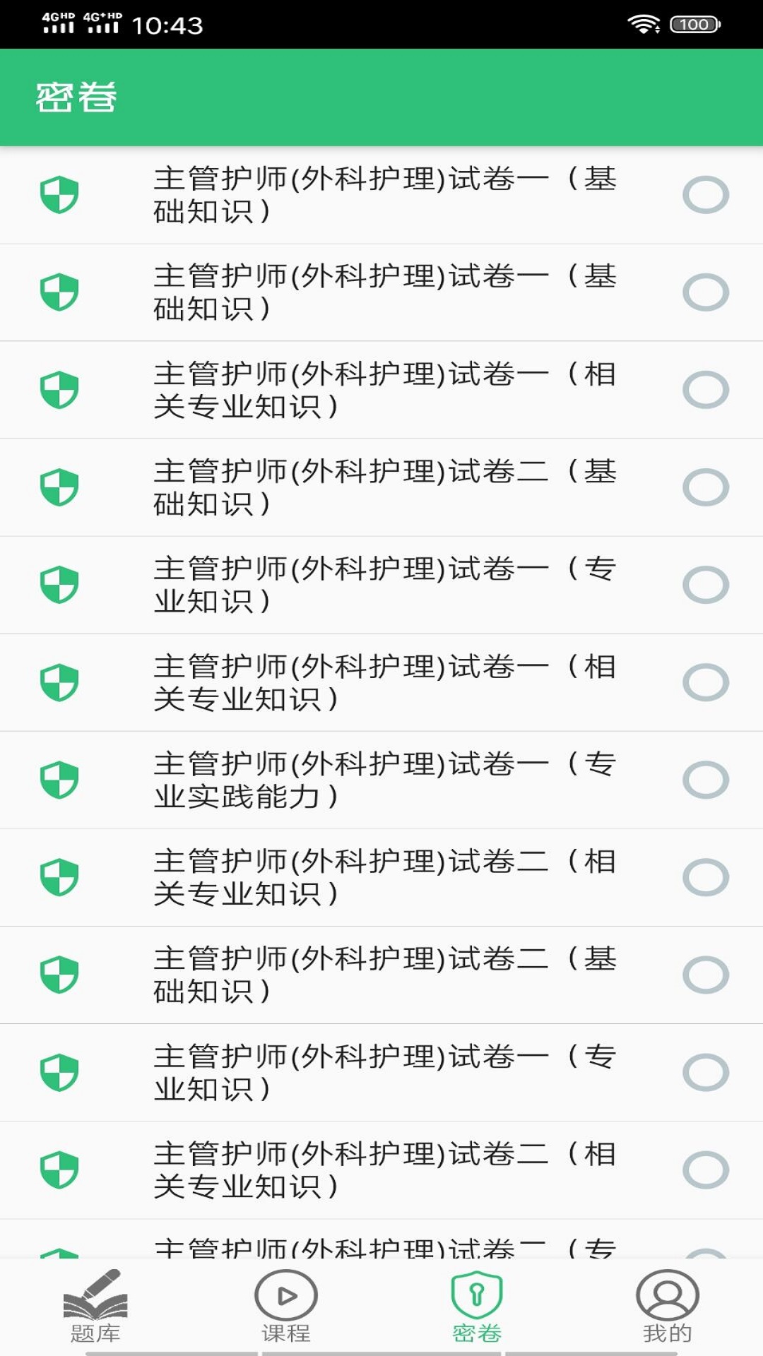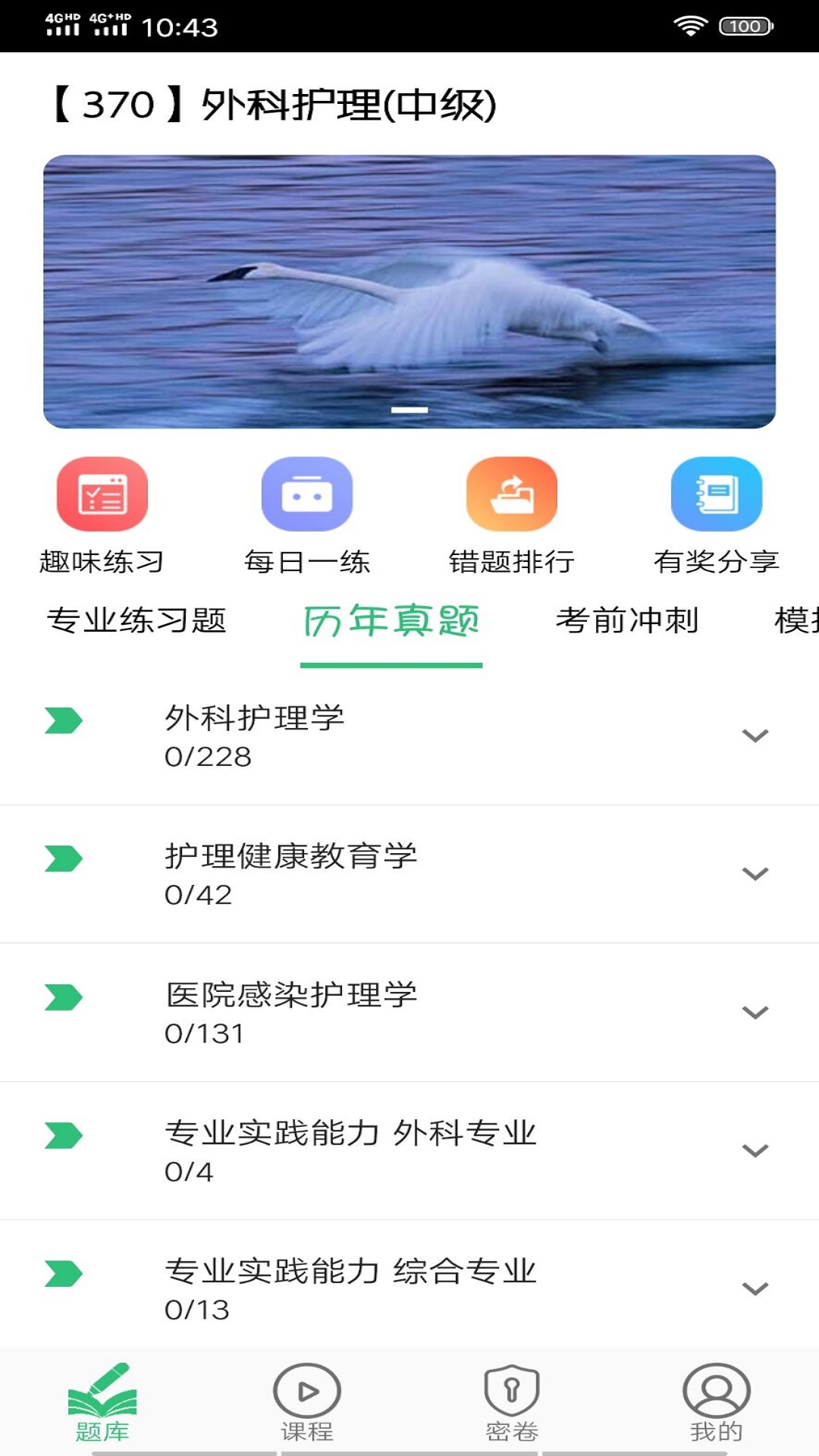这是一款具备能力提升等功能的软件,其内容为外科护理相关的主管护师(中级)知识。该软件系统涵盖了章节练习、模拟试卷以及历年真题等内容,并且设置了“基础知识”“相关专业知识”“专业知识”“专业实践能力”这四个科目。