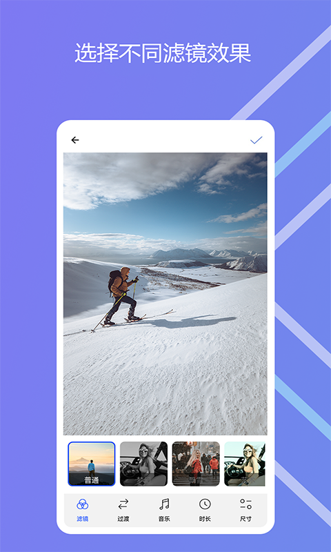 它可以将图像和声音合成为视频。您能从自己的收藏里查找照片,而且照片数量可随意选择。其界面美观大方,简单易懂。它拥有众多的过渡效果,还有令人惊艳的电影滤镜。您能够按照自己的想法来排列图像顺序。利用它,您可以非常快速地从带有音乐的照片创建视频,而且视频里支持放入多张照片。同时,还能对视频的比例进行修改。创建好视频后,您可以通过自己喜欢的应用程序,像是邮件、微信、微博等轻松分享视频。