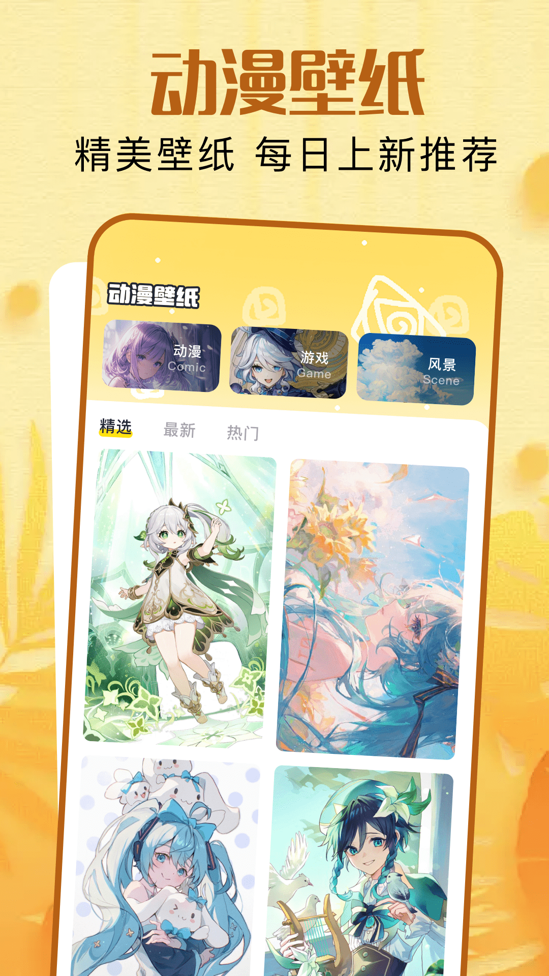 熊猫绘画每日都会上新推荐精美的动漫壁纸,这些壁纸的主题十分丰富,像动漫、游戏、风景等都有涵盖,这样能方便用户迅速找到自己心仪的壁纸。
