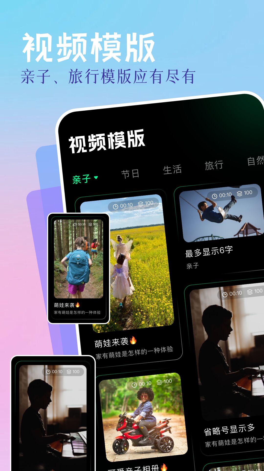 文字和贴纸:借助丰富的文字编辑功能和海量的贴纸资源,您能够为视频添加自己定制的文本内容、标语或者装饰元素,让您的作品更具创意,更有吸引力。丰富的字体、多彩的颜色以及多样的贴纸可供您选择,使您能够尽情发挥创意,塑造独一无二的视频风格。