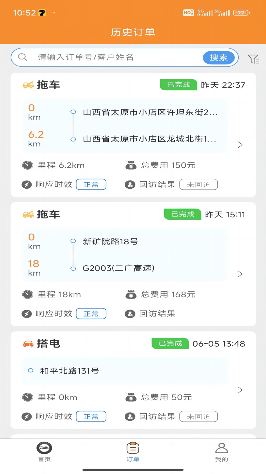 当PC端路卫仕智能救援下发订单,推送到该应用并产生通知,司机收到通知可在app上查看并接单。,接单之后就可根据订单内容前往目的地,派单结束后进行结算。