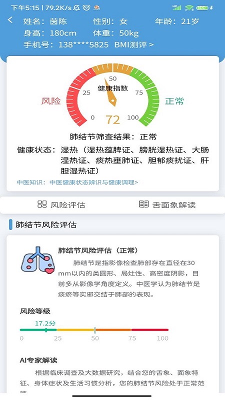 1. 具备家庭成员管理、健康报告管理功能,还能对近期健康状态进行动态分析。
