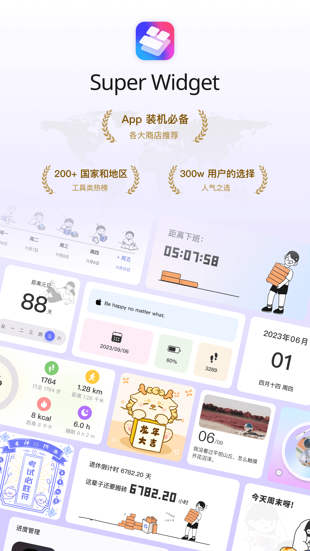 Super Widget由专业设计师团队精心打造,为您提供桌面小组件和精美壁纸。这些元素既美观又实用,您可以自由搭配,轻松构建属于自己的个性化手机桌面。
